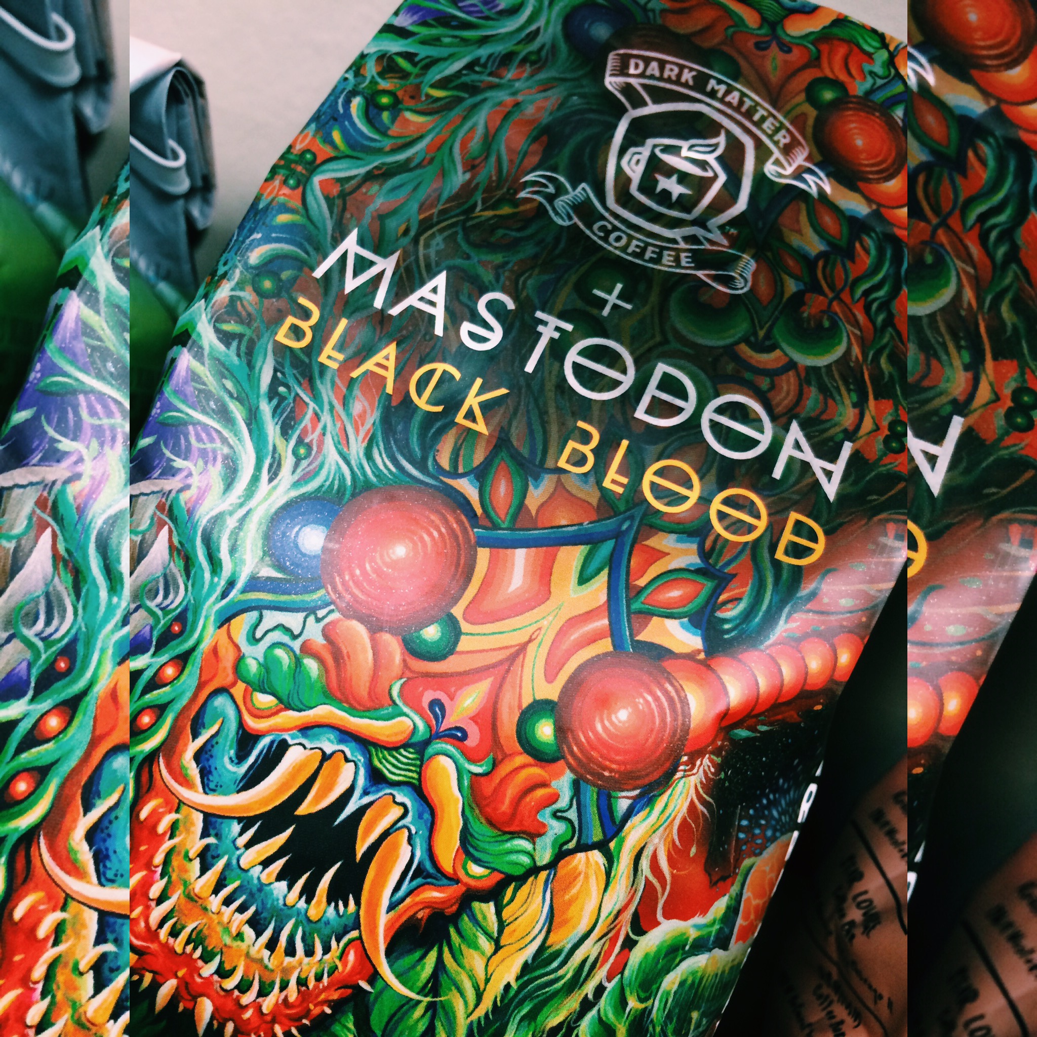Never judge a book by its cover or a coffee by the bag. I have to admit that I was a little skeptical about Dark Matter Coffee. I was torn because I thought that with bags so embellished they were trying to make up for what was inside and at the same time really enjoyed the artwork. Well, I can’t tell you how happy I am to report that the coffee quality is equal to the art! I received four bags of coffee from Dark Matter (I get to order the coffee at EP) but have only tried two. I’m actually writing this today because the second coffee I had was so good that I couldn’t help but post about it. It’s the Black Blood blend which has since sold out… It’s a collaboration between the band Mastodon and Dark Matter. The beans were aged in Basil Hayden’s Bourbon Whiskey barrels which contributed an amazing boozy flavor to this coffee. The whiskey def came out in the cup but it wasn’t overwhelming it actually had some nice peanut butter cup to it. As it cooled the whiskey flavor really shined! I’m thinking this would make a great iced coffee too. Black Blood is the second coffee that I’ve tried that was aged in whiskey barrels and I have to say that it was my favorite. Go order some Dark Matter now!!!