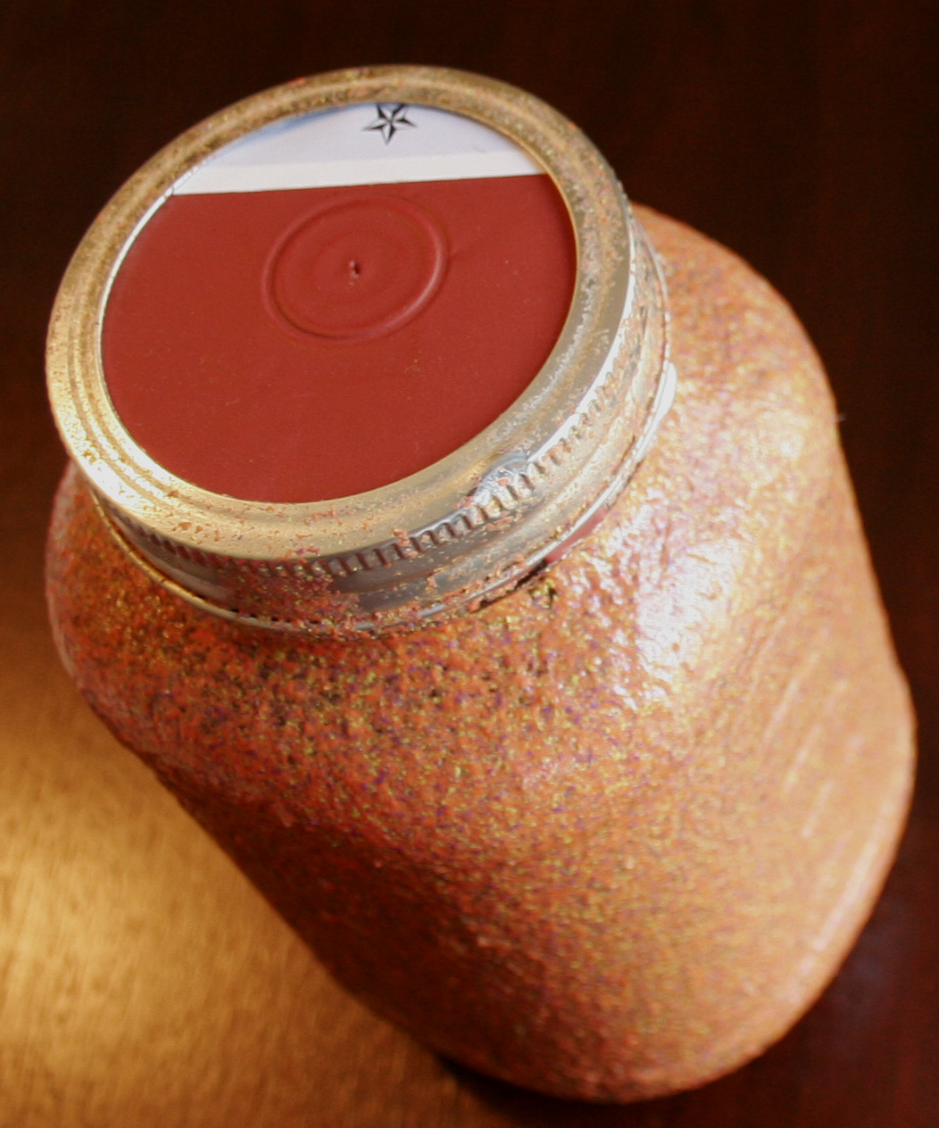 I currently live in Olympia, WA and I’m originally from the south which means I’m inclined to re-purposing mason jars. I have a Baratza Maestro plus at home and when I need to dial in the grind for a certain brewing device I don’t waste new coffee I use old coffee. To keep the beans from getting too gross I keep them in an opaque jar covered in ColorTex by Design Master. It’s a spray adhesive that has bits of multi colored plastic in it. After I’ve covered the jar with the ColorTex I let it dry overnight. I noticed that the jar smelled of spray paint afterward so I covered it in two coats of Mod Podge. This helped cover the smell and give the jar a more glossy look. I really love how the jar looks!